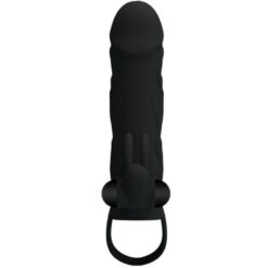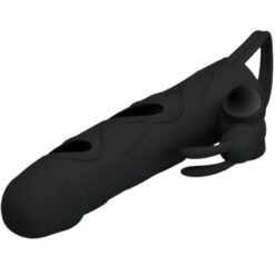 Porque el tamaño si importa, ahora Pretty Love trae esta funda de silicona para que puedas alcanzar hasta los 15.2 cm. Está hecho con silicona de primera calidad, resistente al agua para que puedas usarla en la ducha o spa, con anillo de sujeción en los testículos e incorpora una bala vibradora y rabbit con lo que aumentareis el placer en pareja. Además de ganar unos centímetros en longitud y grosor de más, es perfecto para personas con eyaculación precoz o disfunción erectil para poder seguir disfrutando.